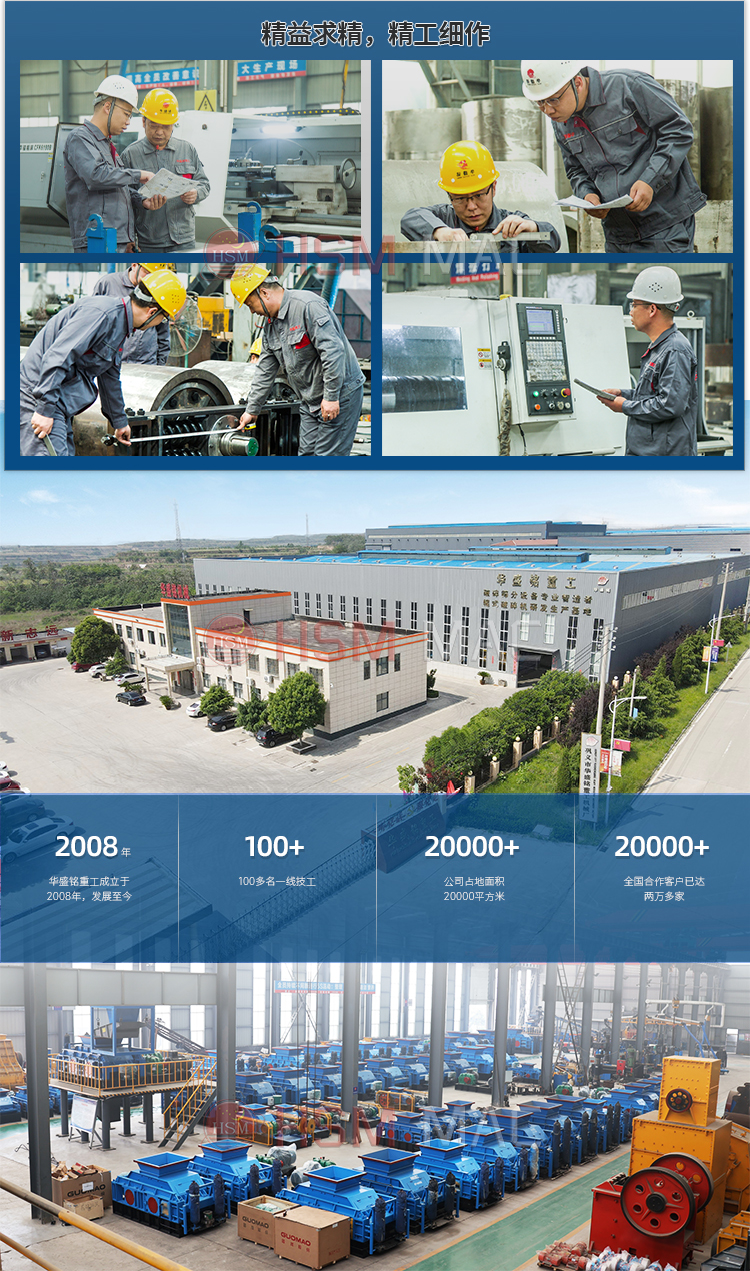 4.華盛銘高鉻錳鋼耐磨材質含有稀有金屬輥皮已申請國家專利,出料粒度可以精確調整已申請國家專利,雙輥破碎機輥筒已經申請國家專利。